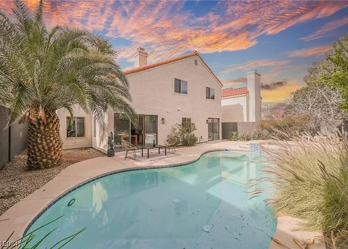 Situada en el distrito Henderson, la casa de vacaciones está a 15 minutos en coche del aeropuerto internacional Mccarran de Las Vegas. Los huéspedes pueden visitar el Parque Desert Bloom, que está a unos 10 minutos en coche de esta villa, o visitar el Parque Sunset, que está a 15 minutos en coche.